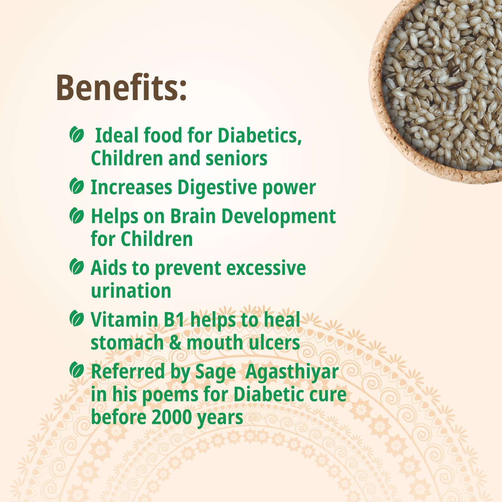 * Ideal food for Diabetics, Children and seniors